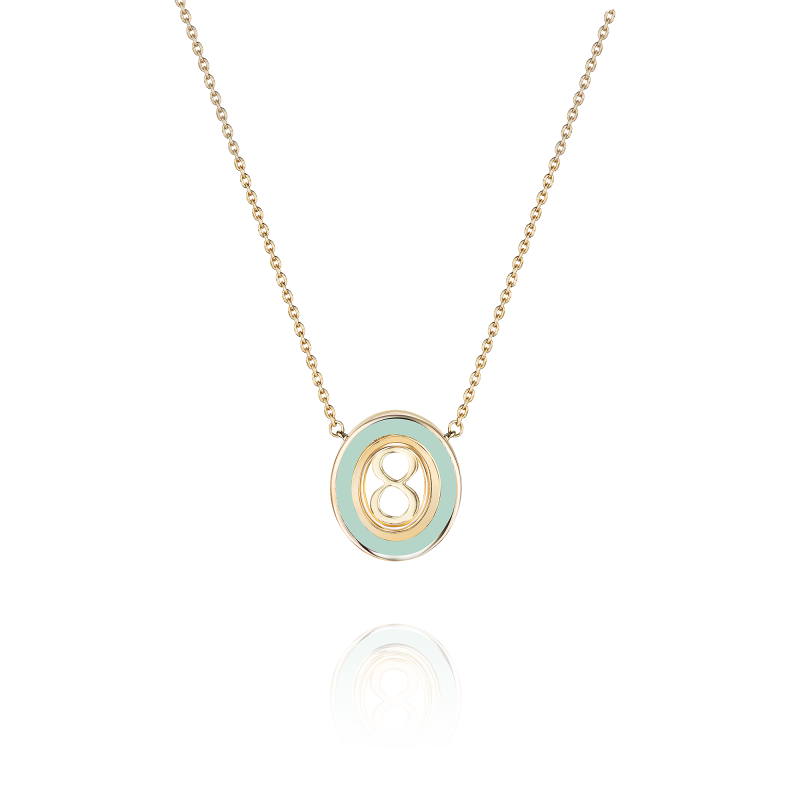 The conceptual pendant on a chain with three levels of length is made of yellow gold. In the center of the pendant, under a sapphire crystal with a rim of colored enamel, there is a gold numeral. The meaning and meaning of the number may not be available to outsiders, but it is extremely important to you.