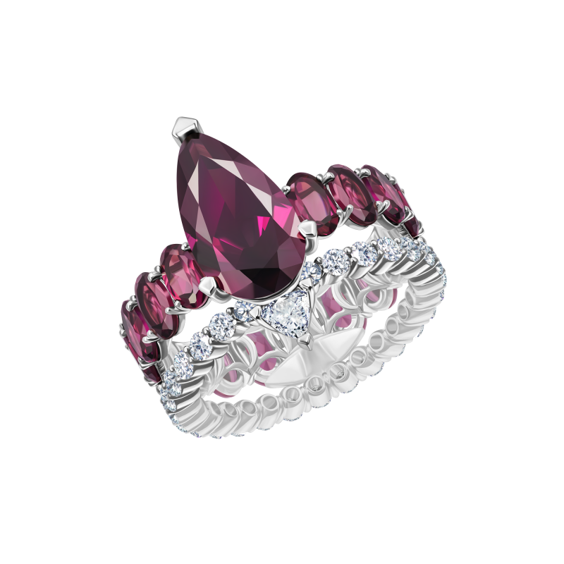 Ring with rhodolite and diamonds